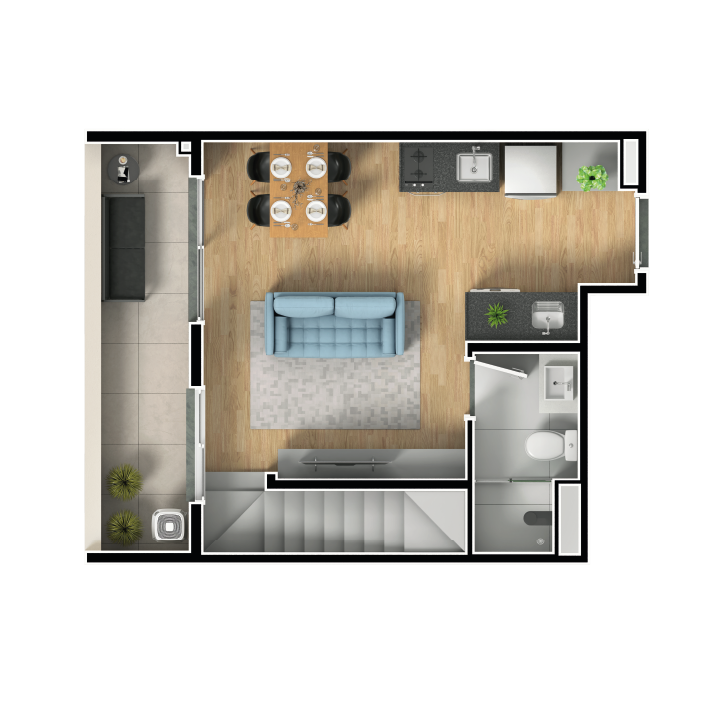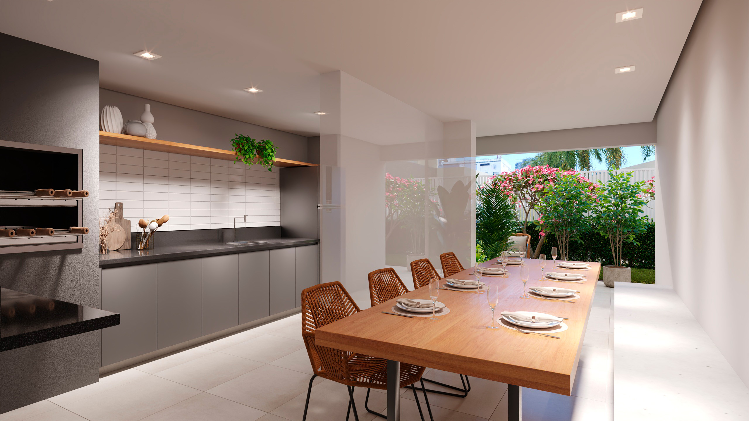 Os revestimentos, bancadas, louças e metais são sugestões de decoração.