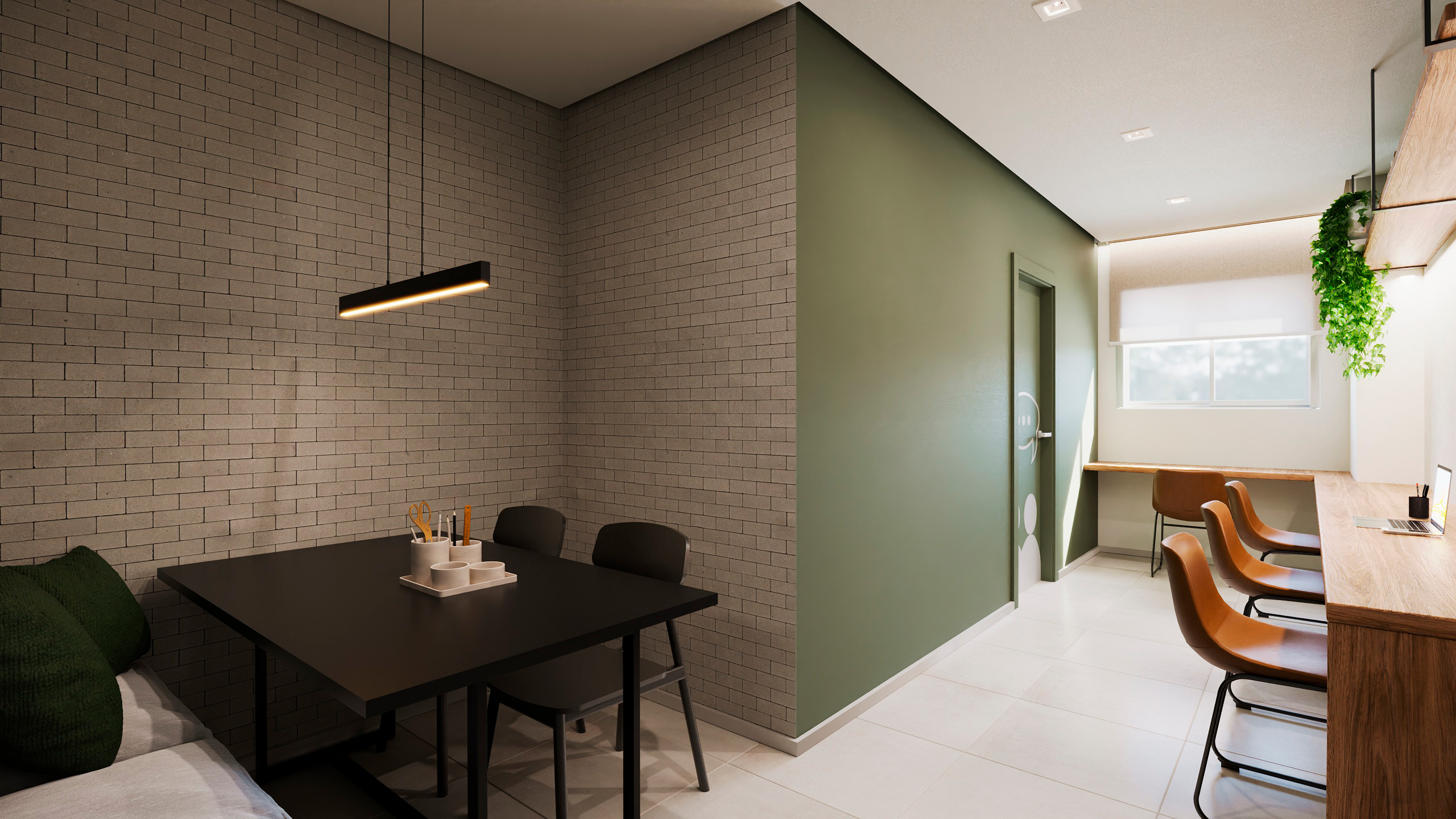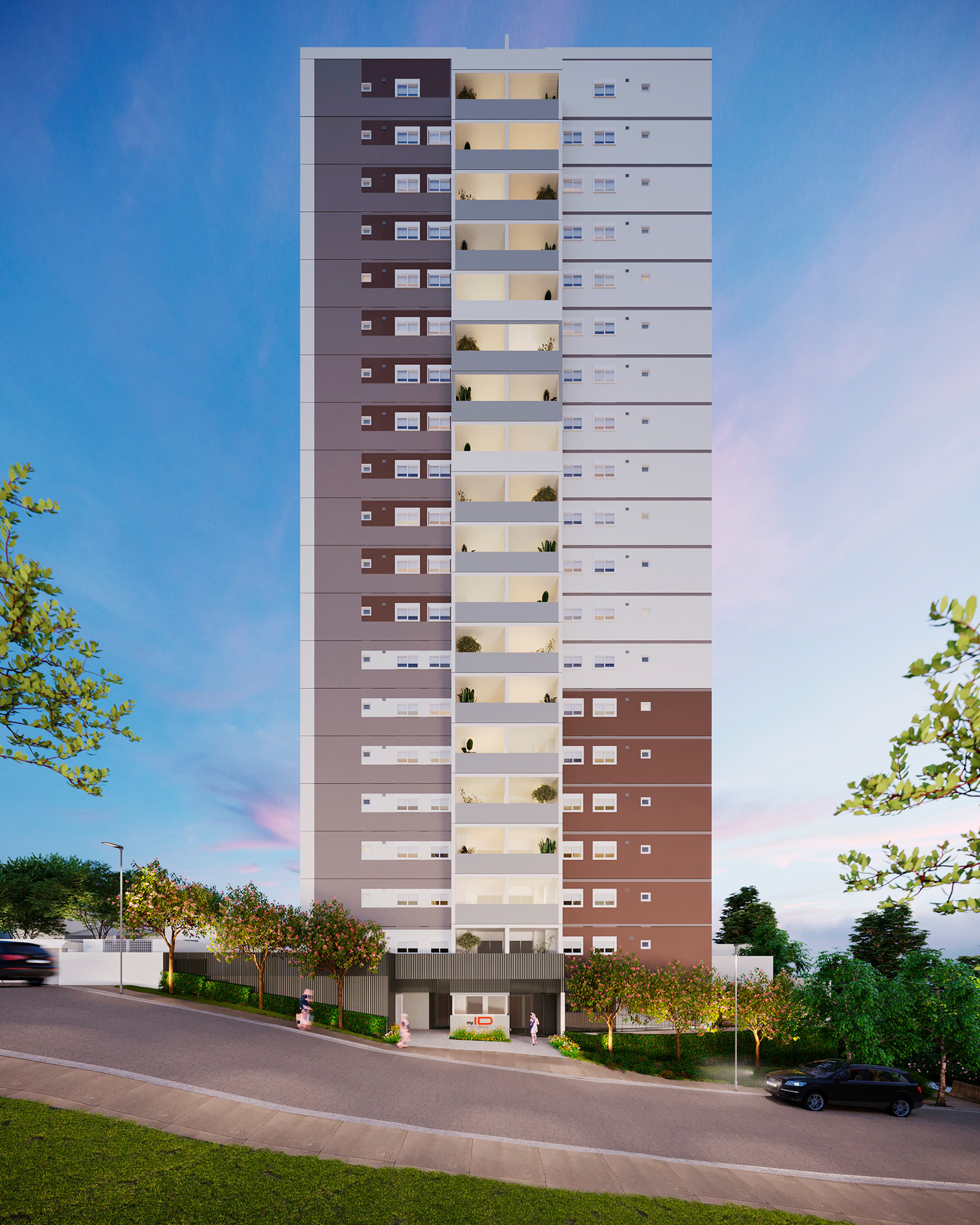 *Sugestão de planta de 1 dormitório equivalente a 63,61m², final 01 do 18º pavimento, do pavimento tipo.