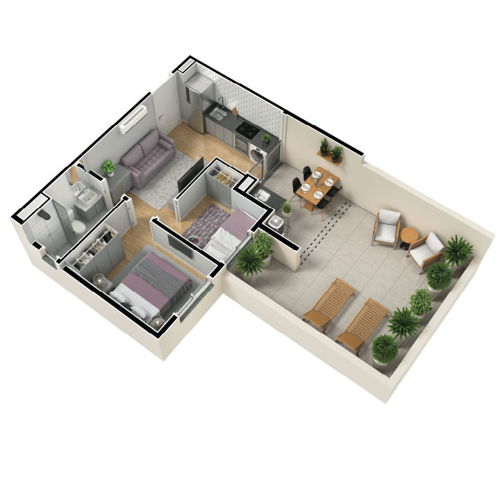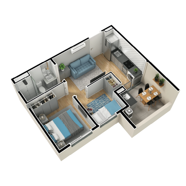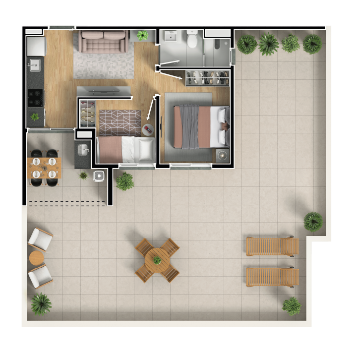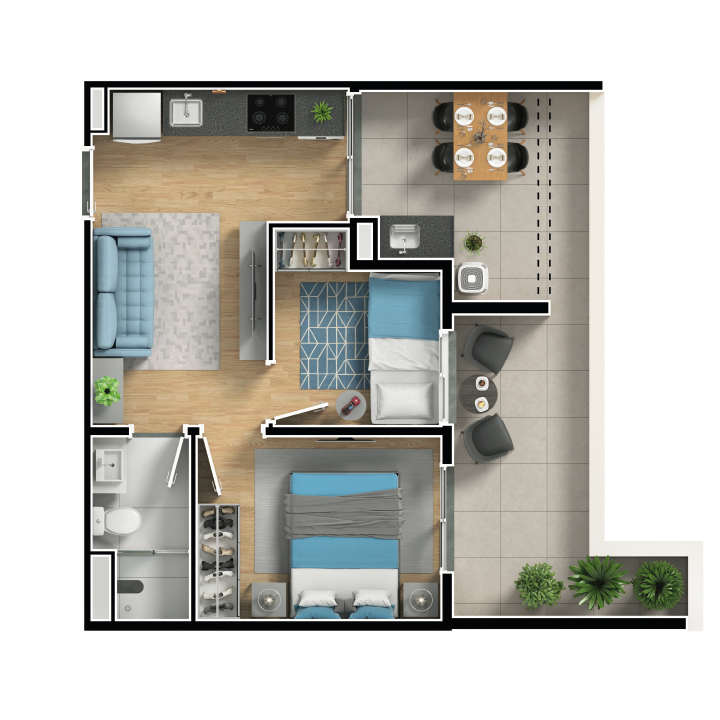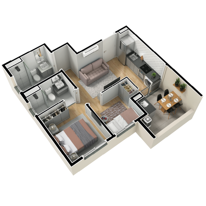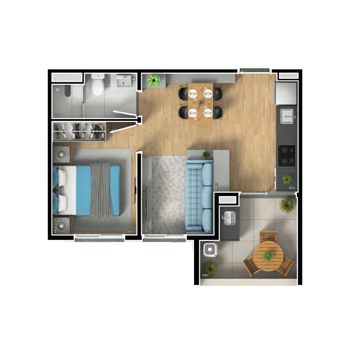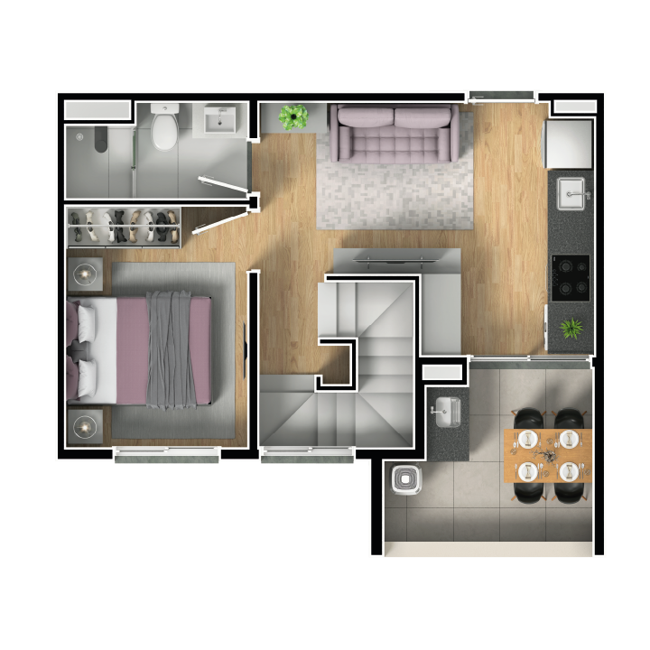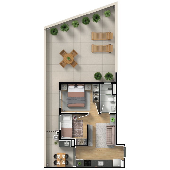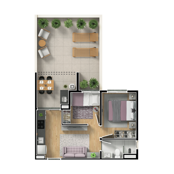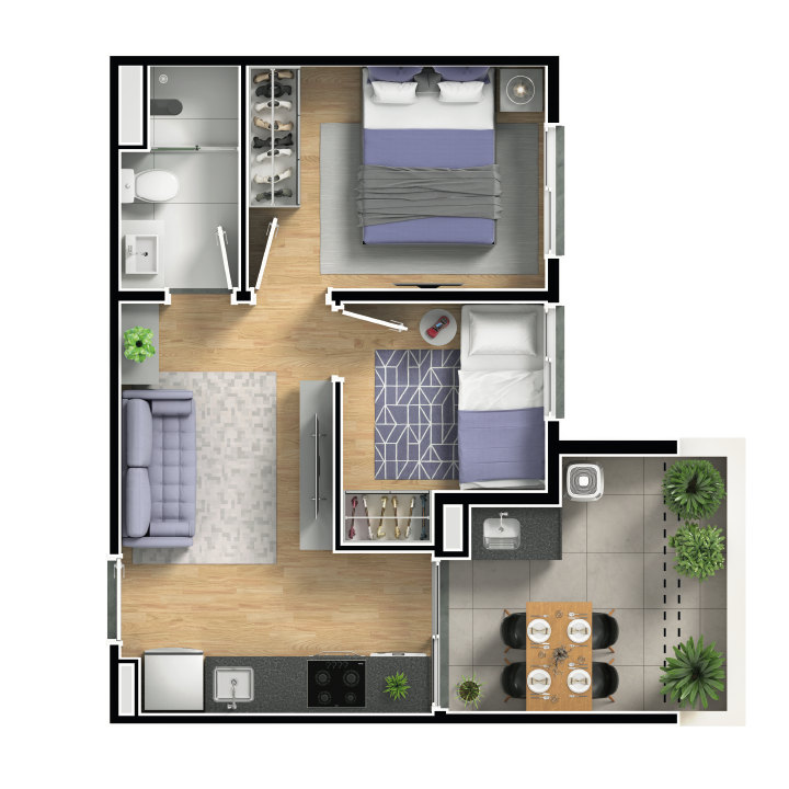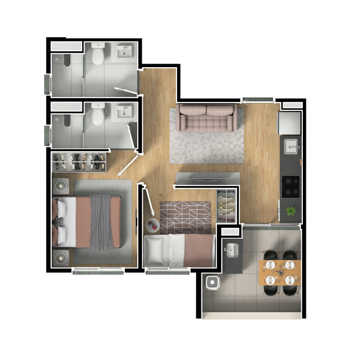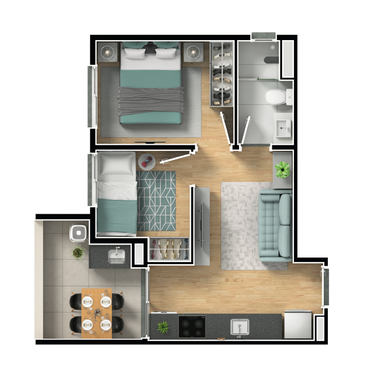 *Sugestão de planta de 2 dormitórios equivalente a 42,73m², final 10, do pavimento tipo.