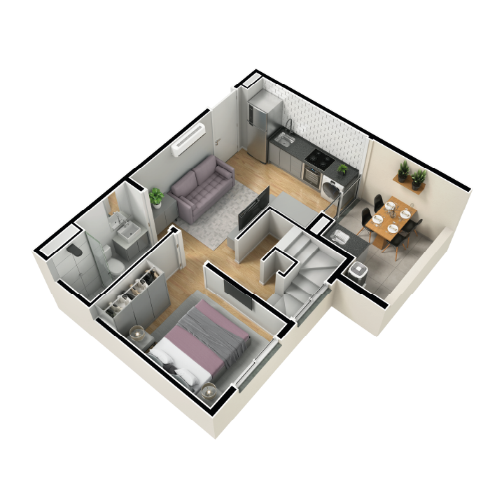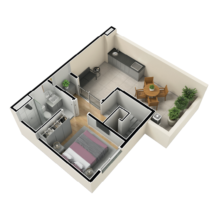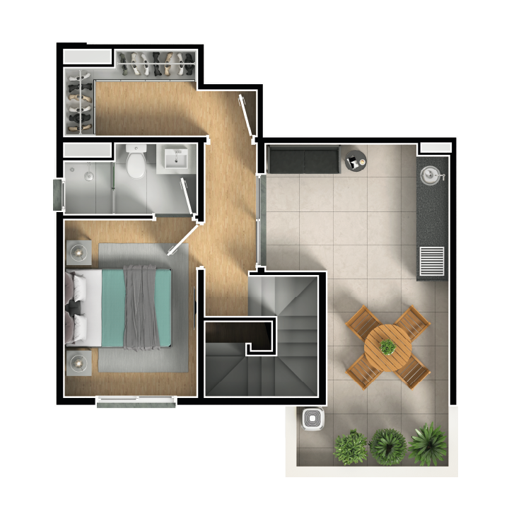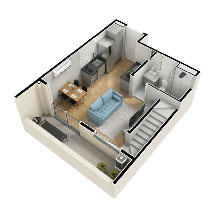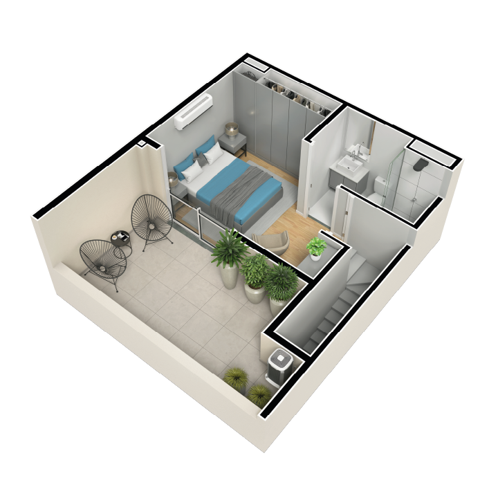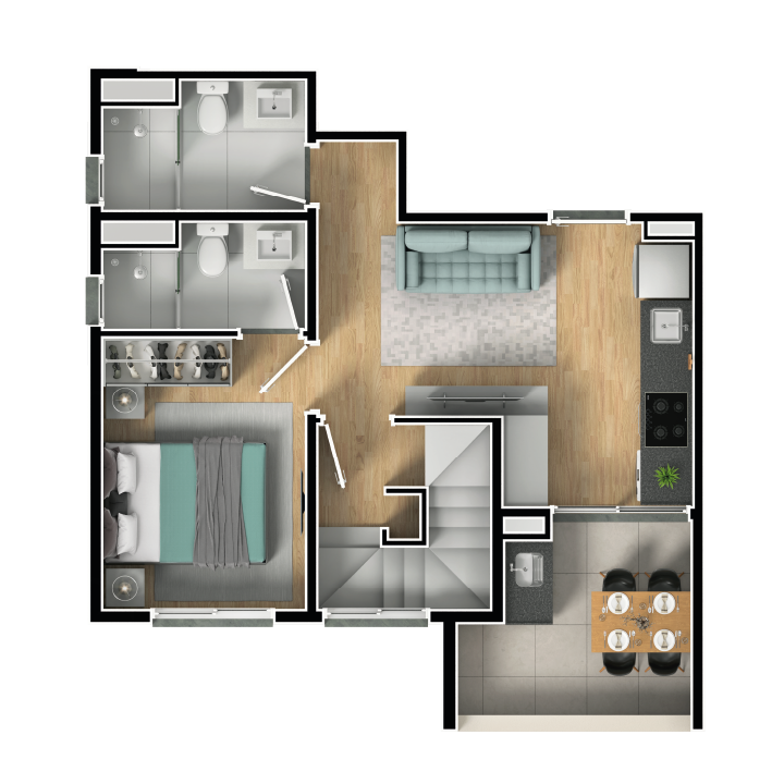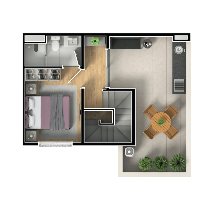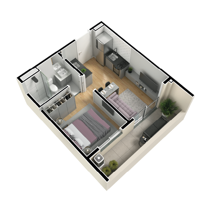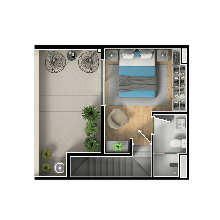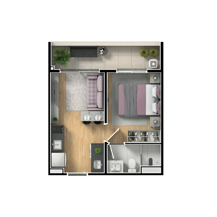 *Sugestão de planta de 1 dormitório equivalente a 30m², final 12, do pavimento tipo.