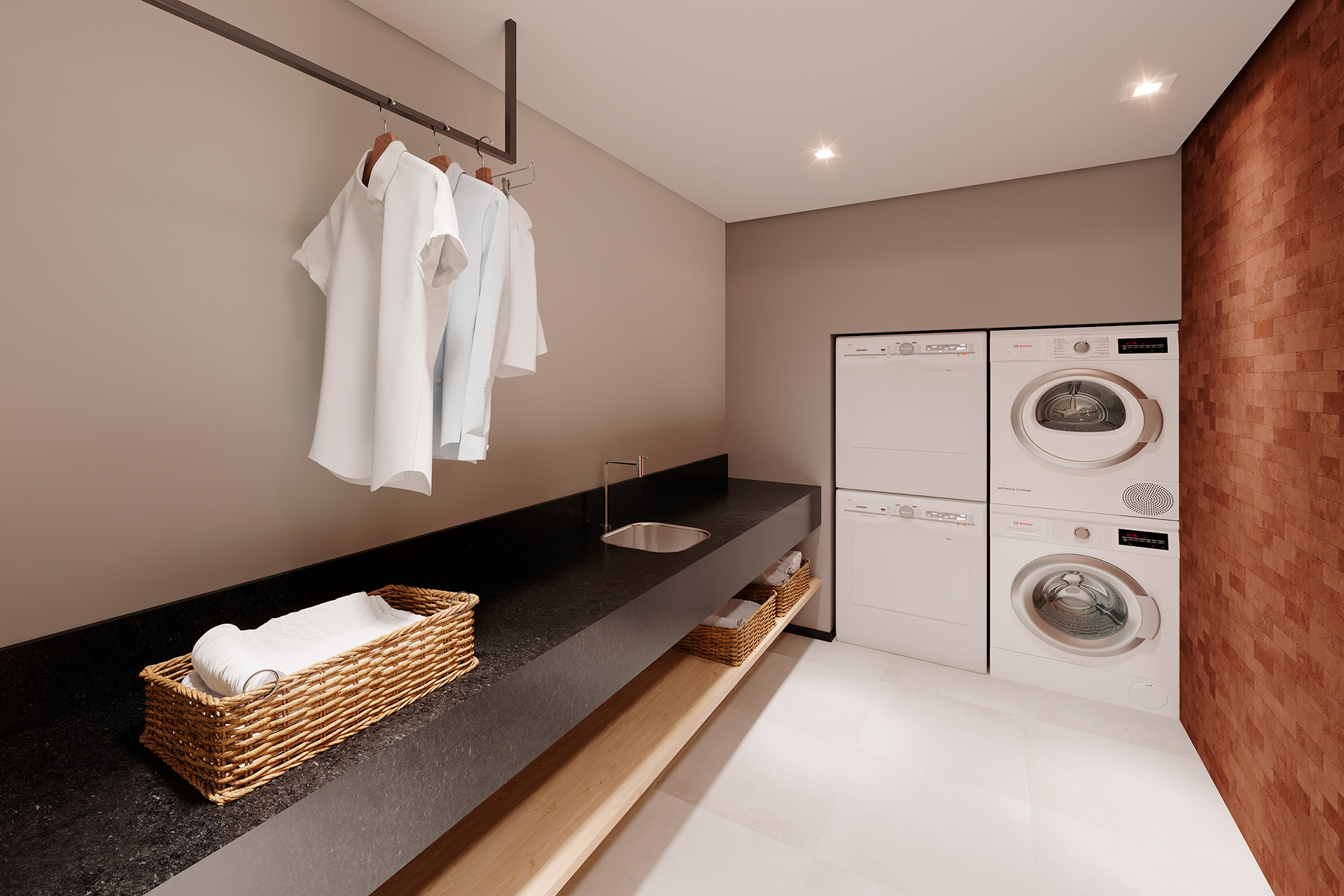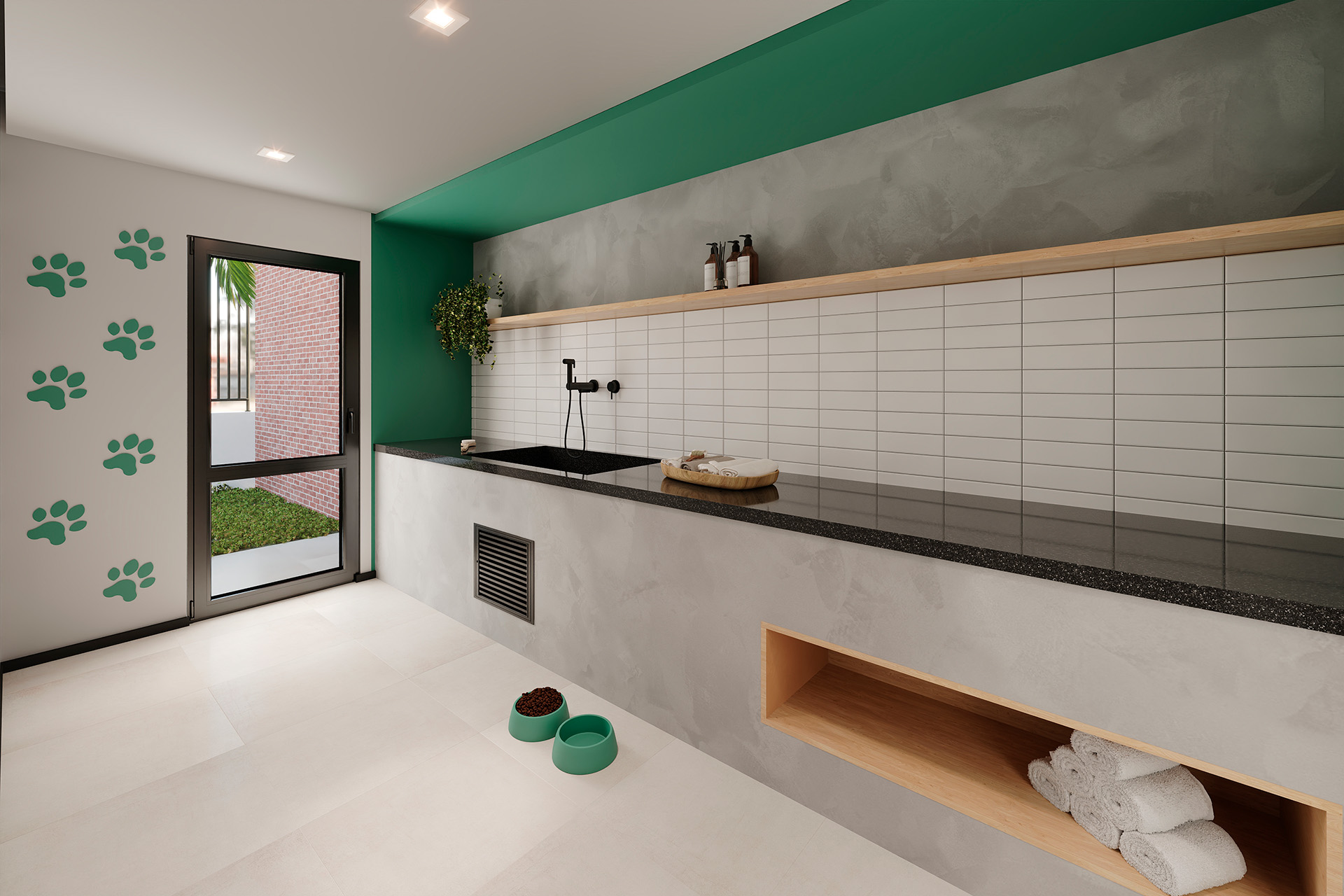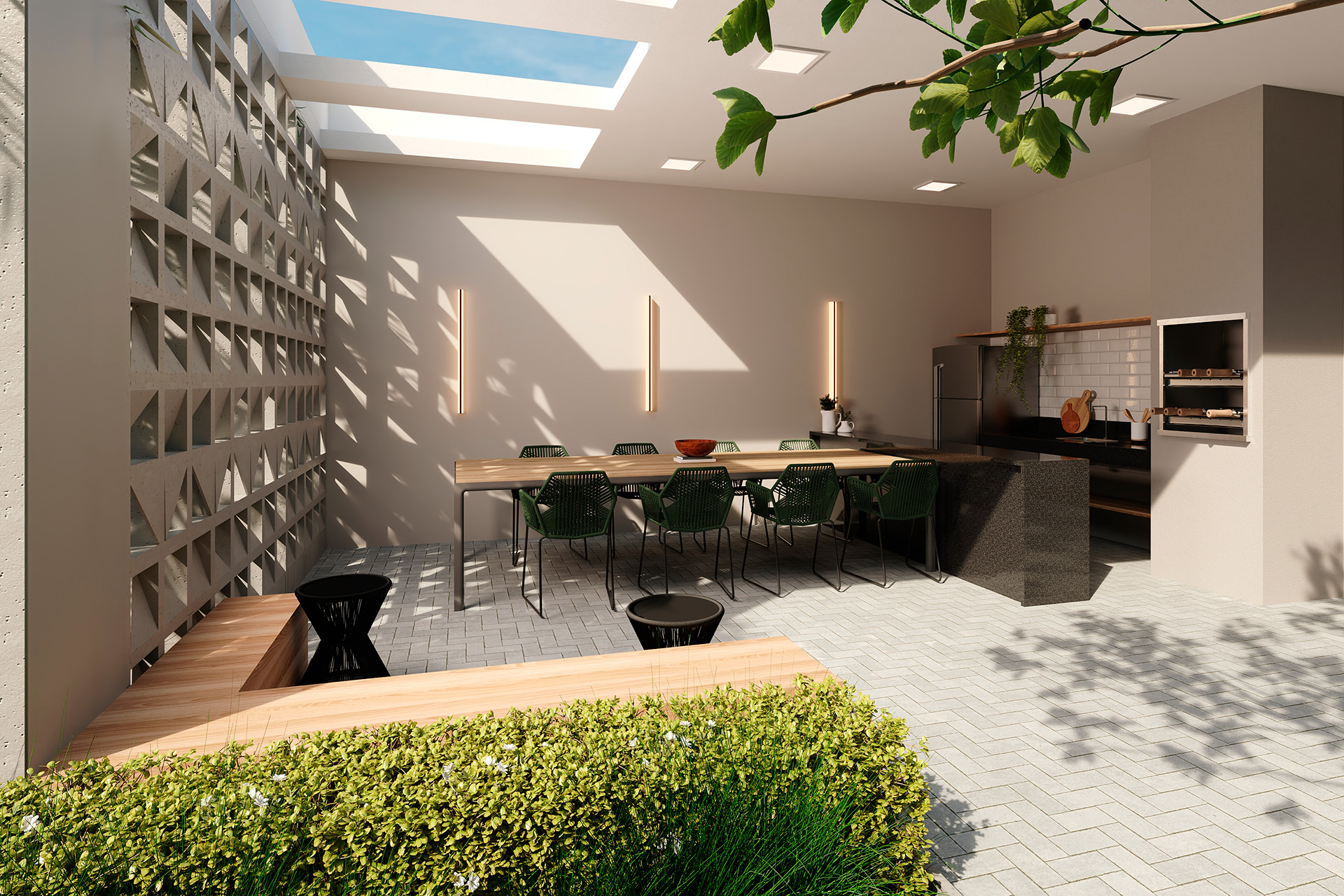 Os revestimentos, bancadas, louças e metais são sugestões de decoração.