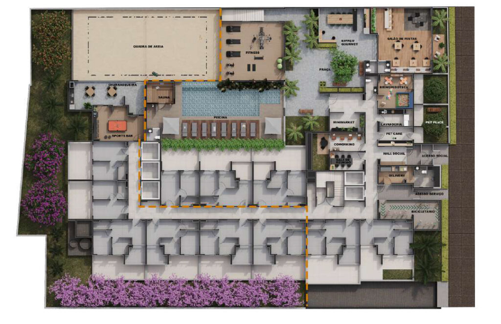 *Sugestão de planta de 1 dormitório equivalente a 41,42m², final 12, do 2º Subsolo.